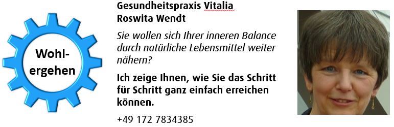 Impressum: Gesundheitspraxis Vitalia Roswita Wendt, Zur Eselswiese, 18181 Graal-Müritz, Mobil +49 172 7834385, E-Mail vitalia-mv@web.de